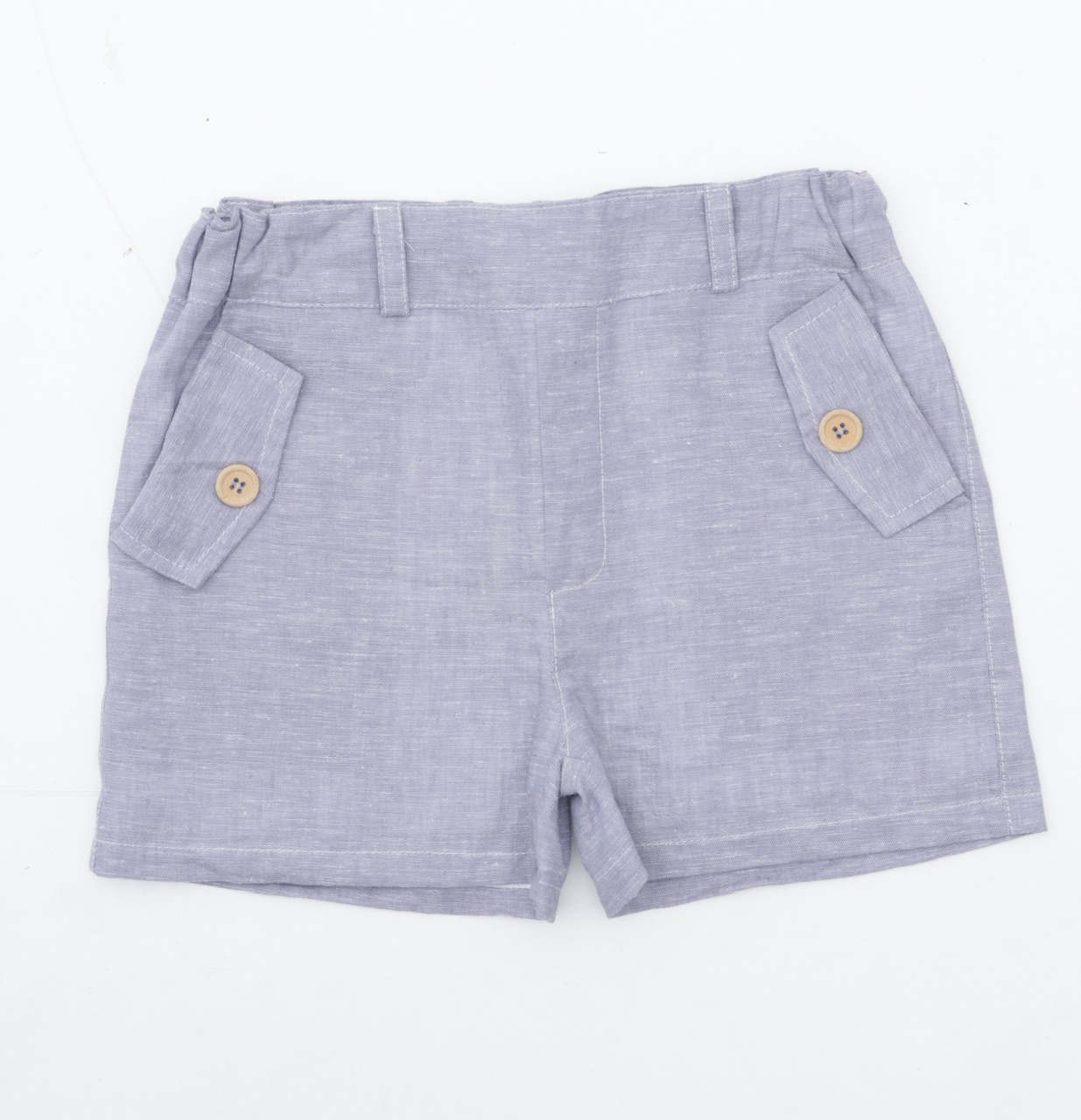 Shorts feito no linho, botões em madeira. Elástico interno para ajuste.