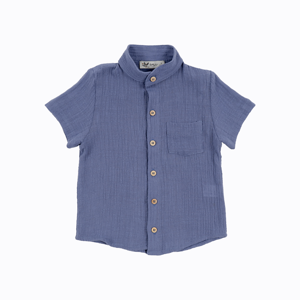Camisa com gola de padre, botões em madeira, feita na gaze de algodão.