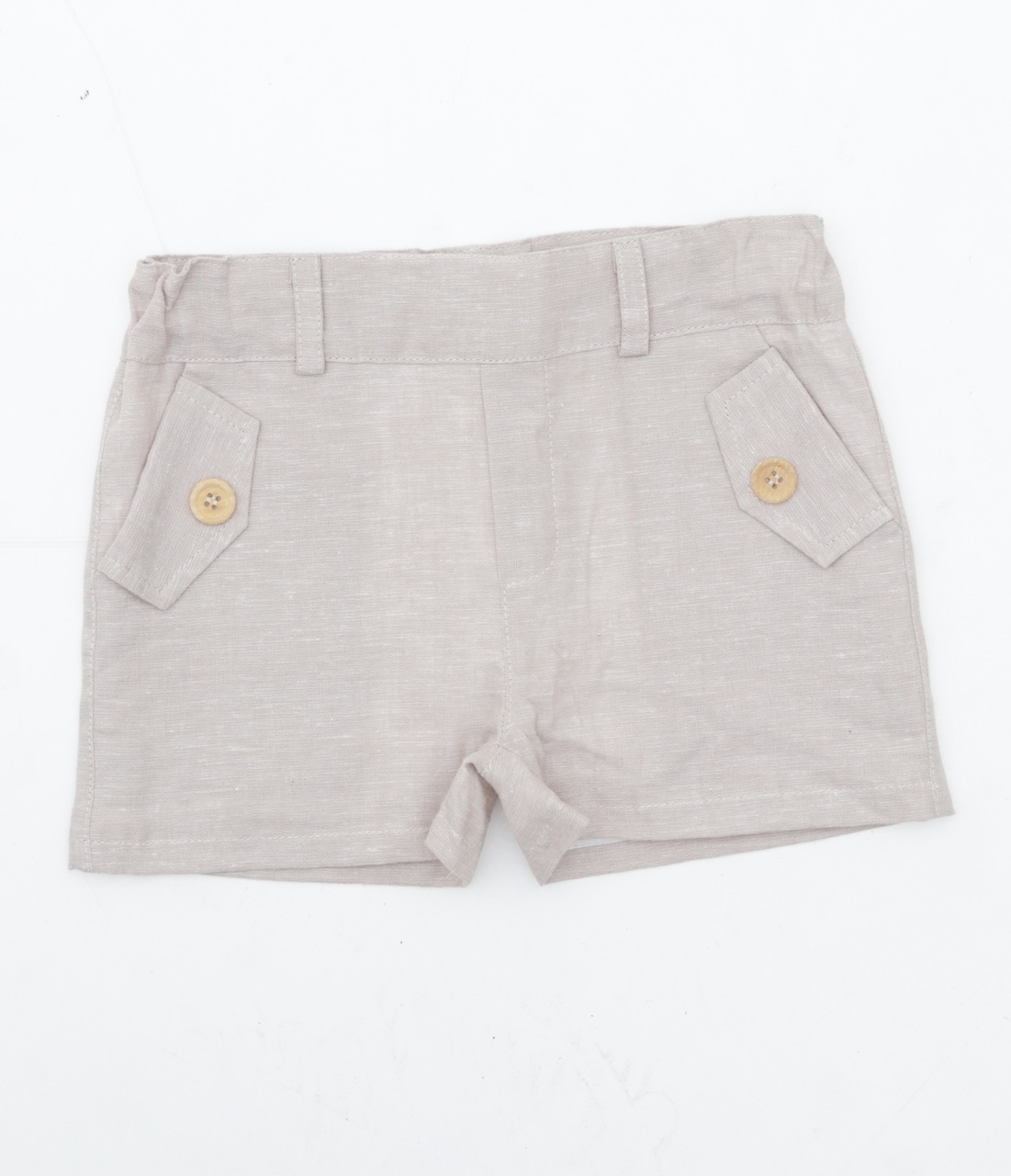 Shorts feito no linho, botões em madeira. Elástico interno para ajuste.